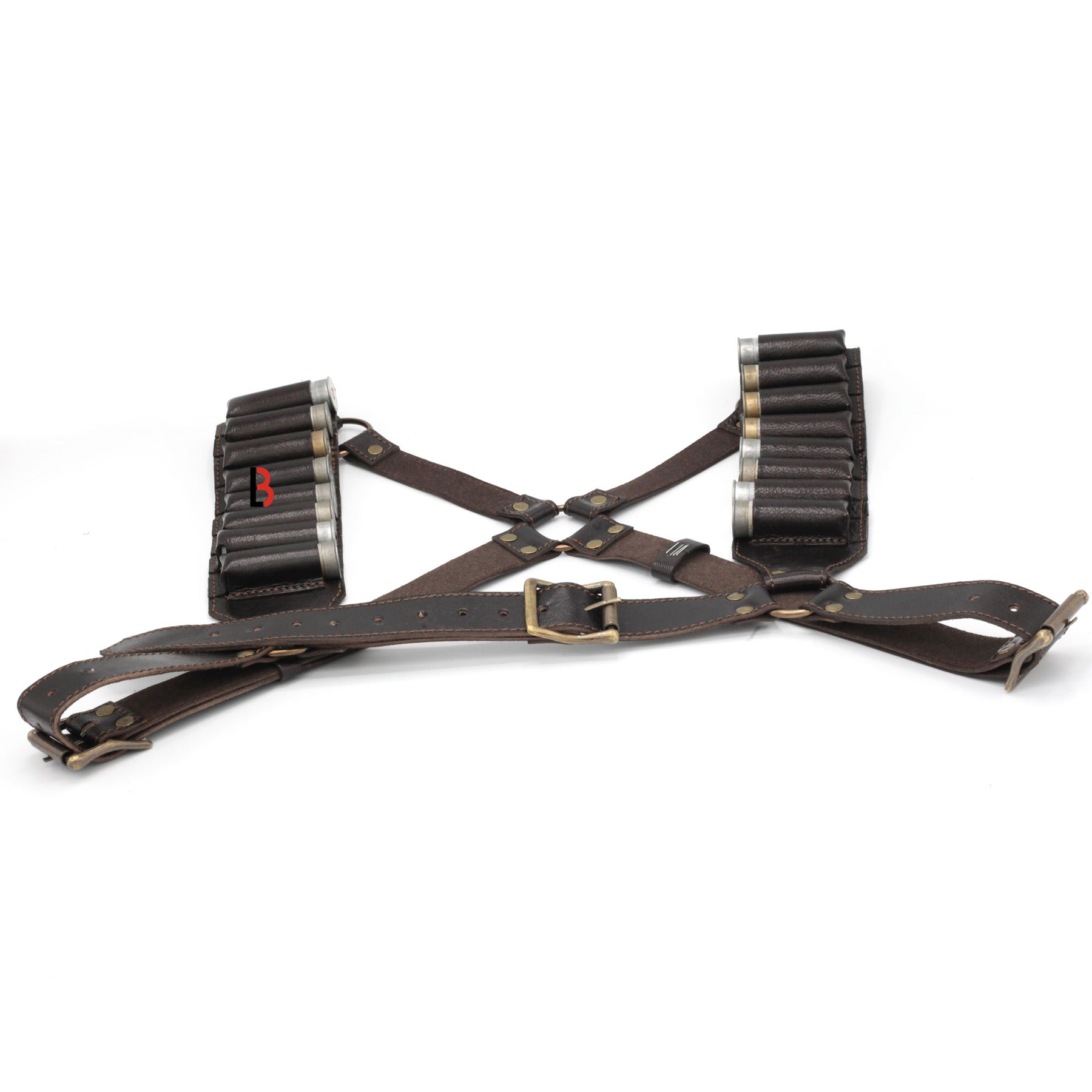 This is a premium, handmade leather shotgun ammo harness designed for cowboys and cowgirls. It is made from premium, thick, and durable full-grain leather and features 16 ammo pockets. This harness is designed to be comfortable and stylish, while also providing easy access to your ammo. It is a great accessory for any hunter or outdoor enthusiast. The harness comes with a 1-year warranty, ensuring that you are satisfied with your purchase.