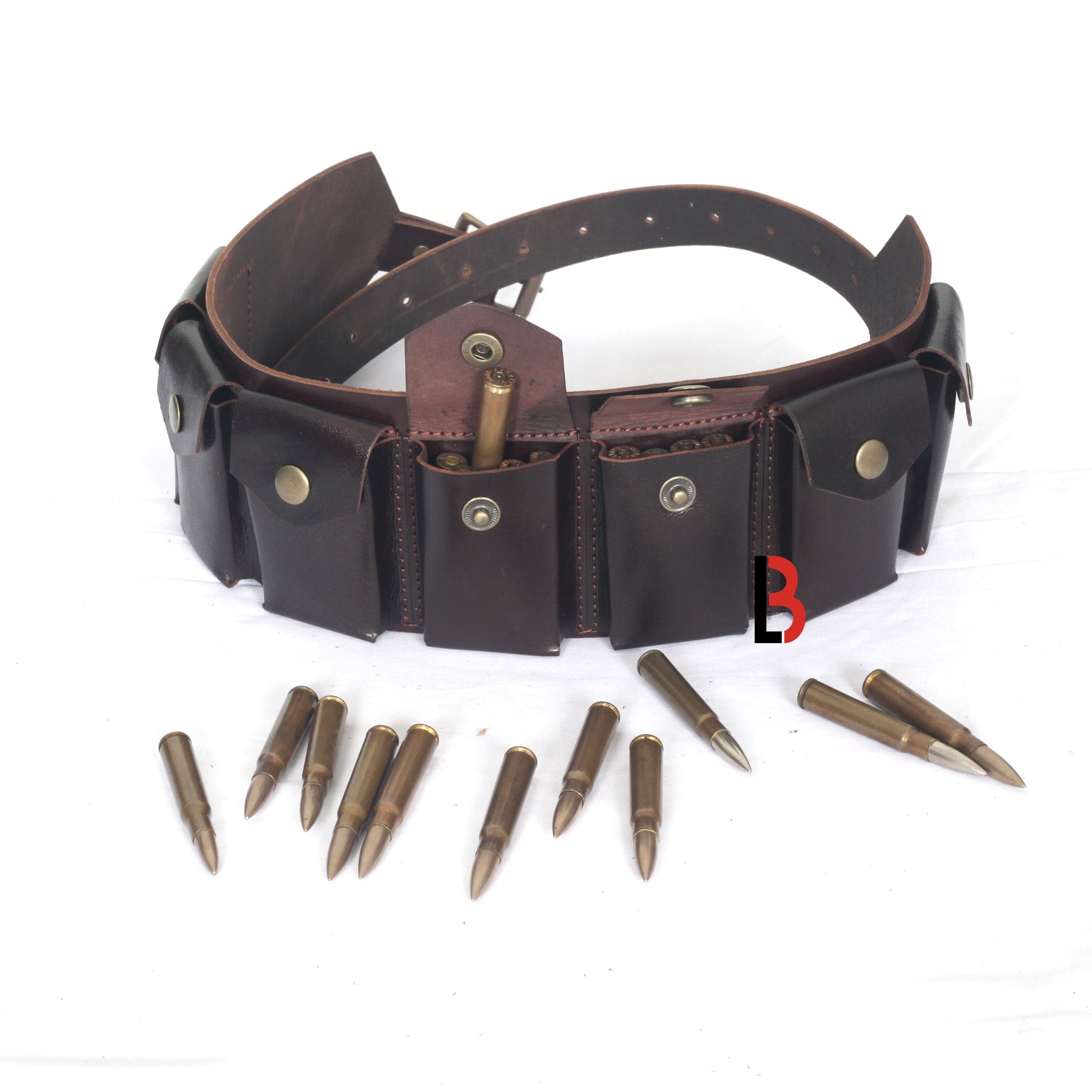 MULTIPURPOSE: This leather ammunition belt can not only be used to carry ammunition, but also can be used small accessories in the belt pouches. It is a versatile and practical accessory.